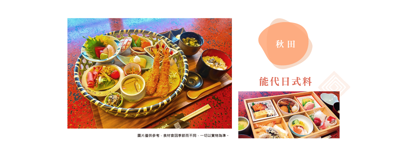 早餐:飯店內 午餐:能代日式料理 晚餐:秋田割烹鄉土料理