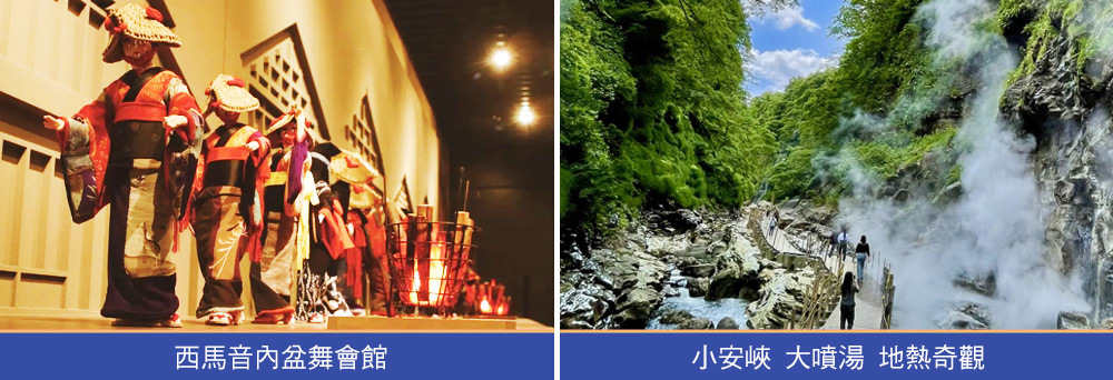 秋之宮溫泉鄉─西馬音內盆舞會館─稻庭烏龍麵(手作體驗+午餐)─小安峽(大噴湯)地熱奇觀─長者原休息站─仙台