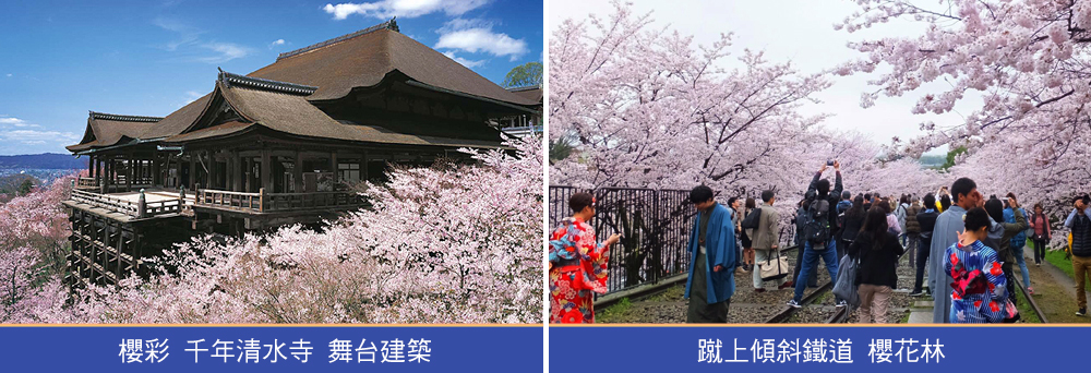 位於京都市東山區的清水寺,凝聚千年的虔誠信仰,是日本不可取代的精神象徵。建築於峭壁上伸展而出的『清水舞台』,是由139支柱撐起的舞台建築,據說只要站在舞台下方,就可以百病全消。15公尺高的主殿木造建築,未用一根釘子、全用木樁打入,完全古工法,由本殿可俯瞰京都全景,正殿後是月下老人廟,求好姻緣。回程利用時間小逛很有日本味的產寧坂懷古街道,選購日本娃娃、清水燒、精緻紀念品。