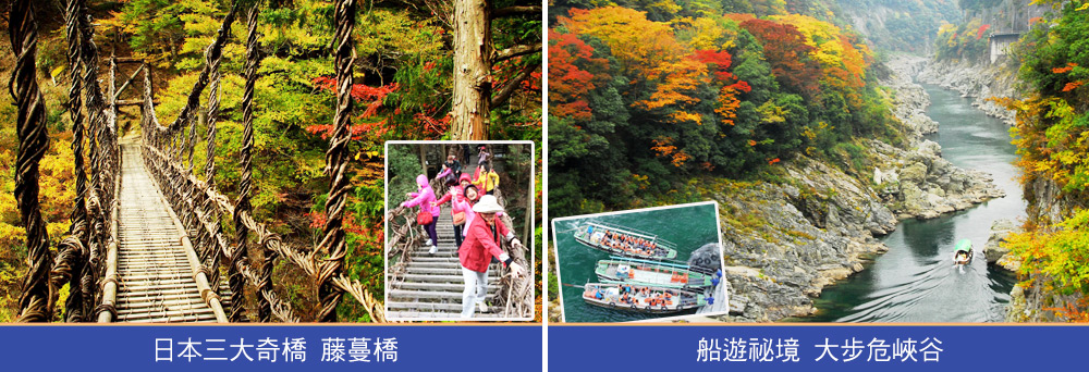 ●『(祕境)祖谷溪(日本三大奇橋)藤蔓橋(山楓)』🍁紅葉期:約11月上旬~11月中旬