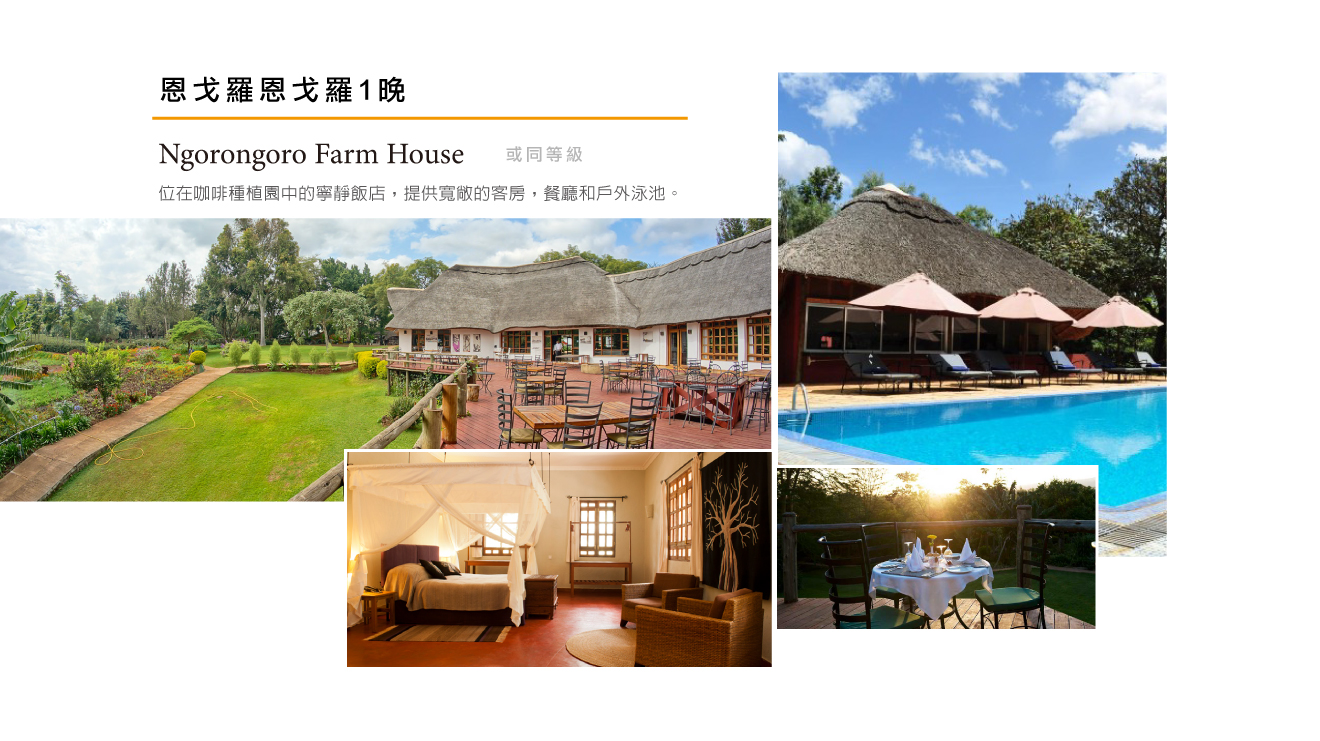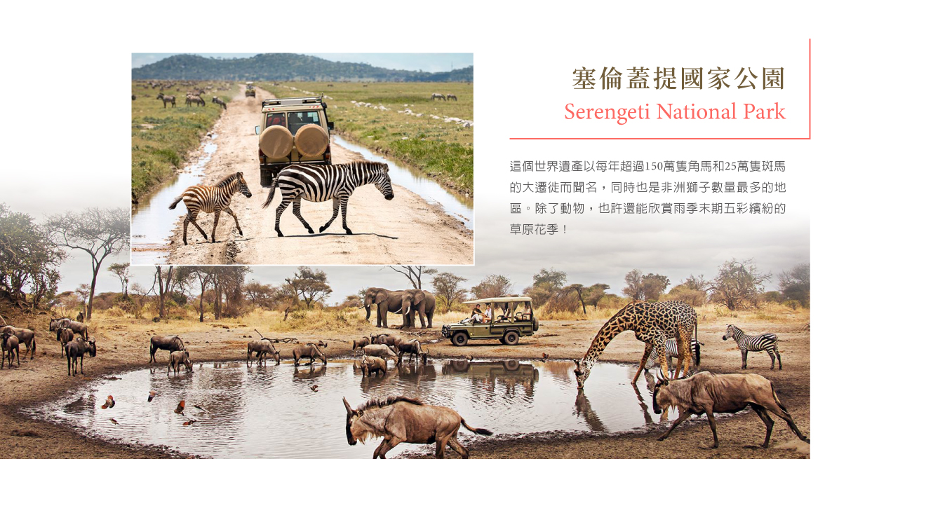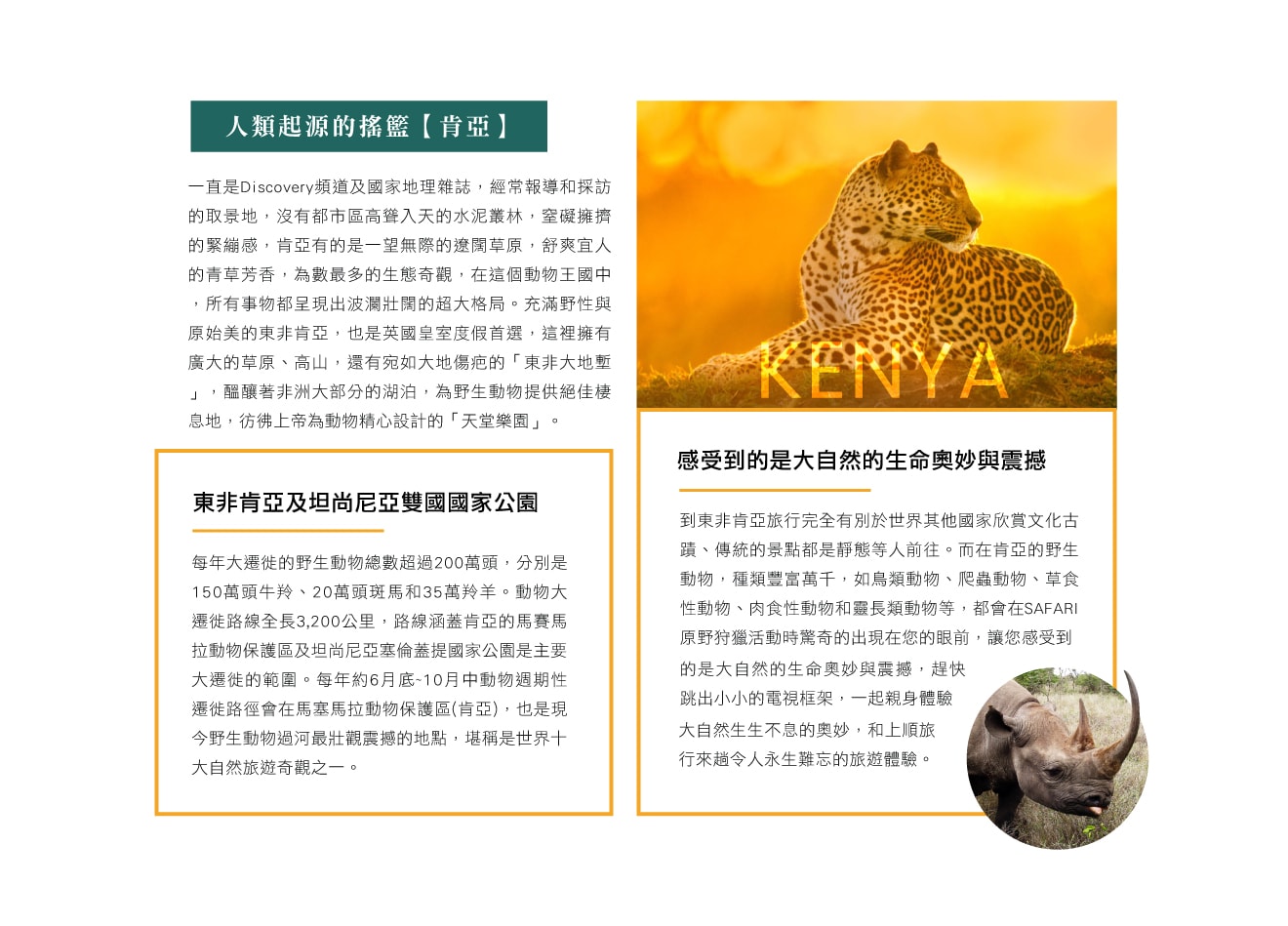 備註:在馬賽馬拉動物保護區僅有少數幾家熱氣球公司,如有需要搭乘,請於報名時或說明會當天告知業務員,以預先為您訂位。每位熱氣球參考費用USD$585(實際費用請依當地熱氣球公司公告為準) (搭乘日期依實際天氣狀況安排)