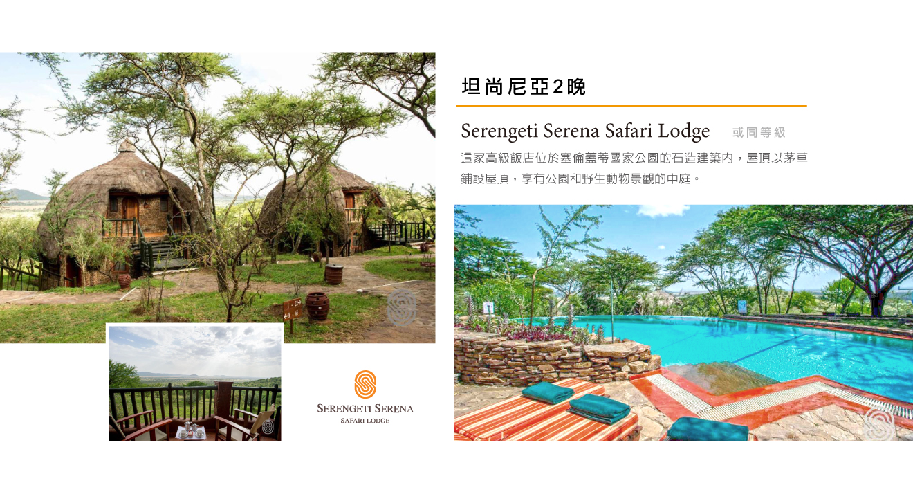 在馬賽語中意為「無盡的平原」。這裡不僅僅是一片草原,更是一個擁有超過200萬年生態系統歷史的古老世界。它是坦尚尼亞的心臟,也是地球上最偉大的自然奇觀之一——動物大遷徙的核心舞臺。今日在塞倫蓋蒂進行野外獵遊。這個世界遺產以每年超過150萬隻角馬和25萬隻斑馬的大遷徙而聞名,同時也是非洲獅子數量最多的地區。