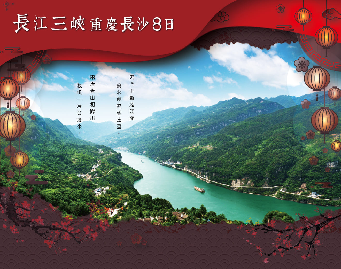 2026/05/19(二) | 桃園國際機場出發 創意中國~重慶大足石刻荊州古城武漢黃鶴樓奢華長江探索號三峽遊船(下水)禮宴巴國8日機位 29 候補0 已售0 可售28特別企劃國泰航空CX重慶進、武漢出,黑珍珠美饌豪華團 |
