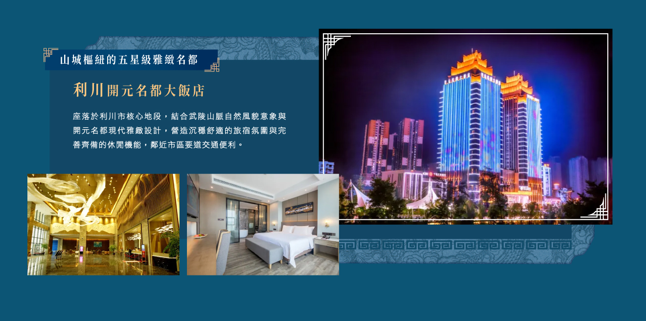 利川~騰龍洞風景區(電瓶車)、夷水麗川秀+++高速火車二等艙2小時 +++重慶~指定入住地點最佳豪華五星頂級麗思瑞凱悅臻選酒店三晚、 洪崖洞吊腳樓夜遊
