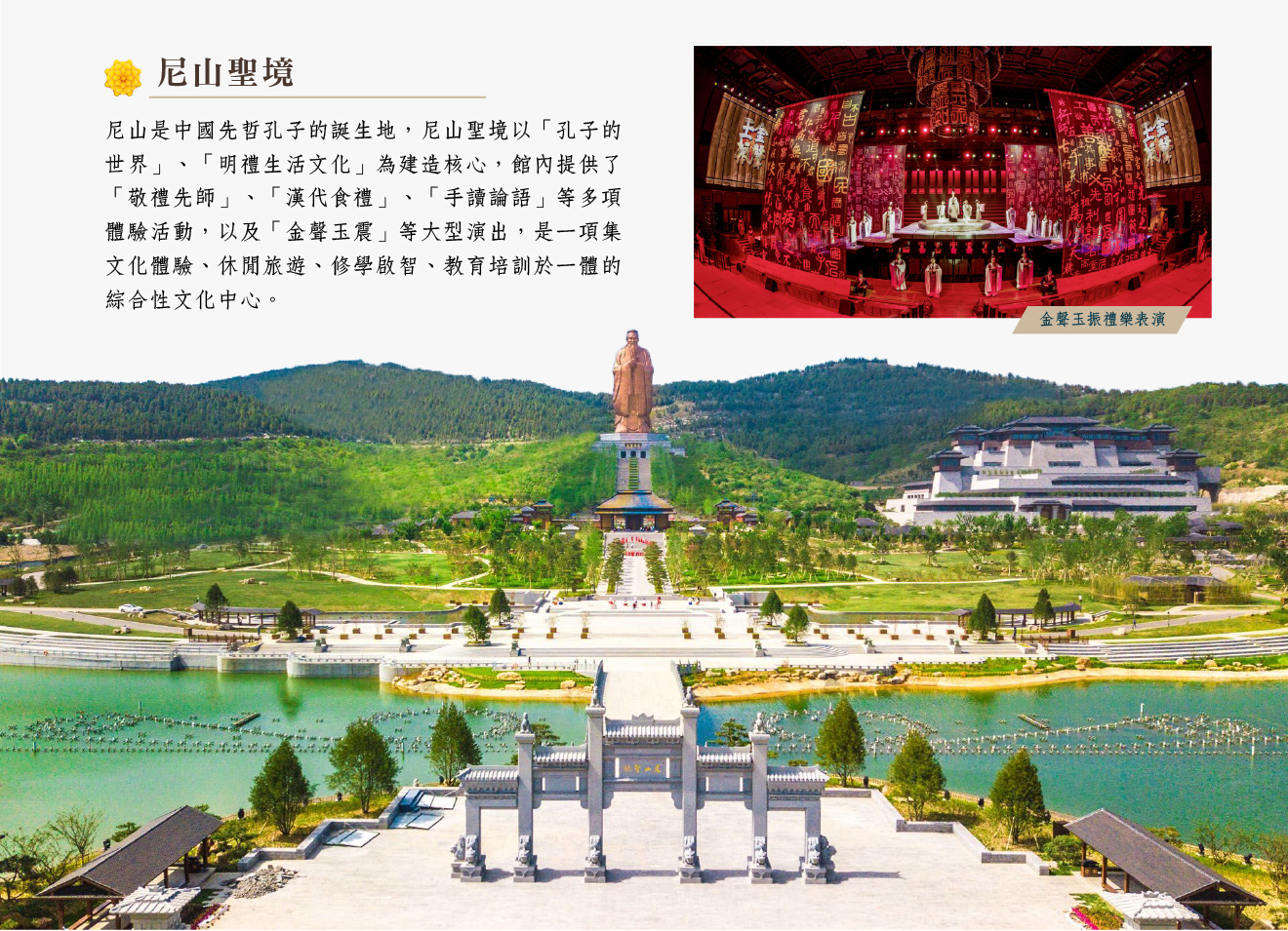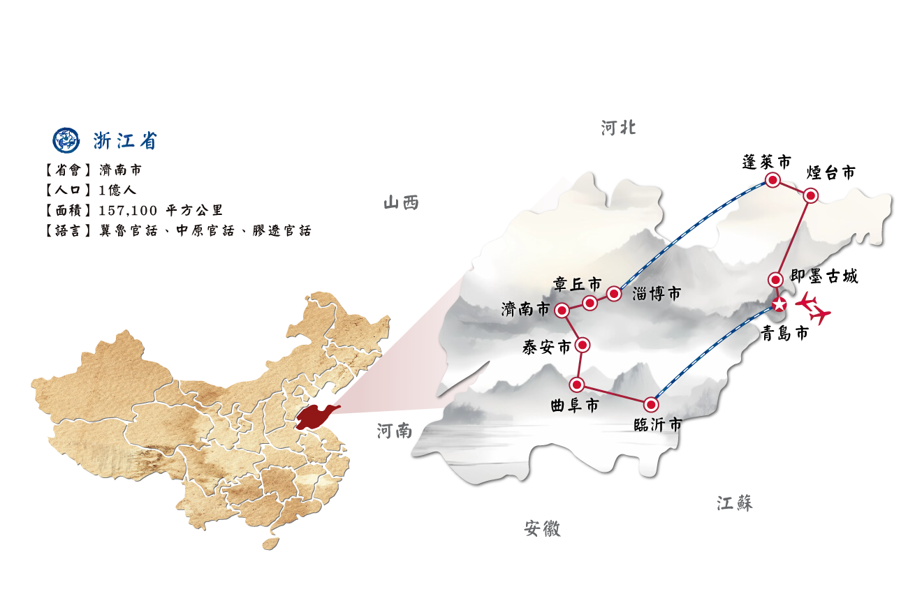 濟南70km五嶽之首泰山桃花源索道~南天門、天街、玉皇頂92km 曲阜~孔儒修賢尼山聖境、金聲玉振禮樂表演、沉浸式孔府家宴晚餐
