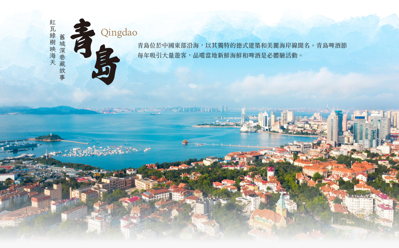 【青島】位於山東半島南端,三面環海,為東部沿海重要的旅遊城市及港口,也是國家歷史文化名城和風景旅遊勝地,清末時期德、日租界於此,有許多別具特色的外國建築,具有異國風情,加上冬不寒,夏不熱的氣候特徵,素有「東方瑞士」之稱。