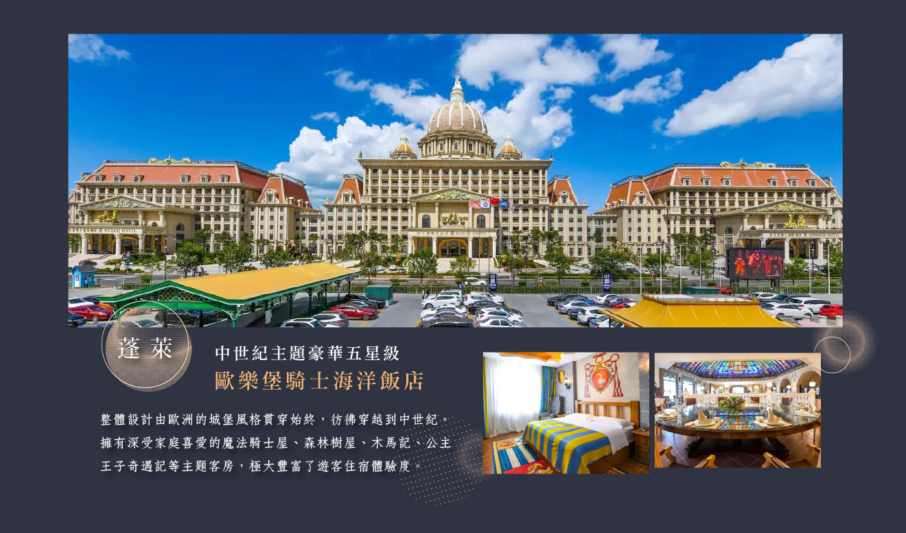 住宿:豪華五星級歐樂堡騎士海洋飯店 或 準五星級蓬萊閣希爾頓歡朋飯店 或同等級