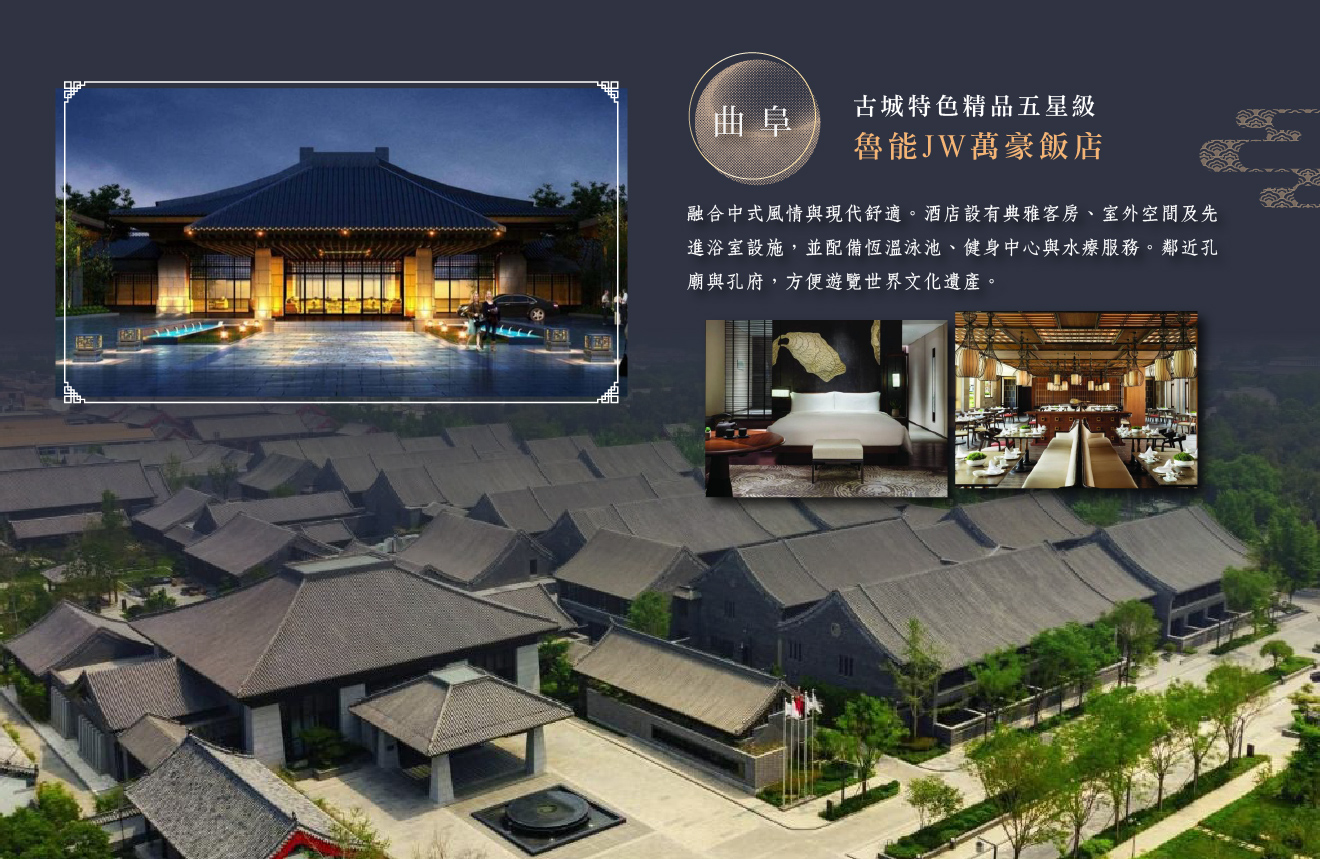 住宿:豪華五星級曲阜魯能JW萬豪飯店 或 香格里拉大飯店 或同等級