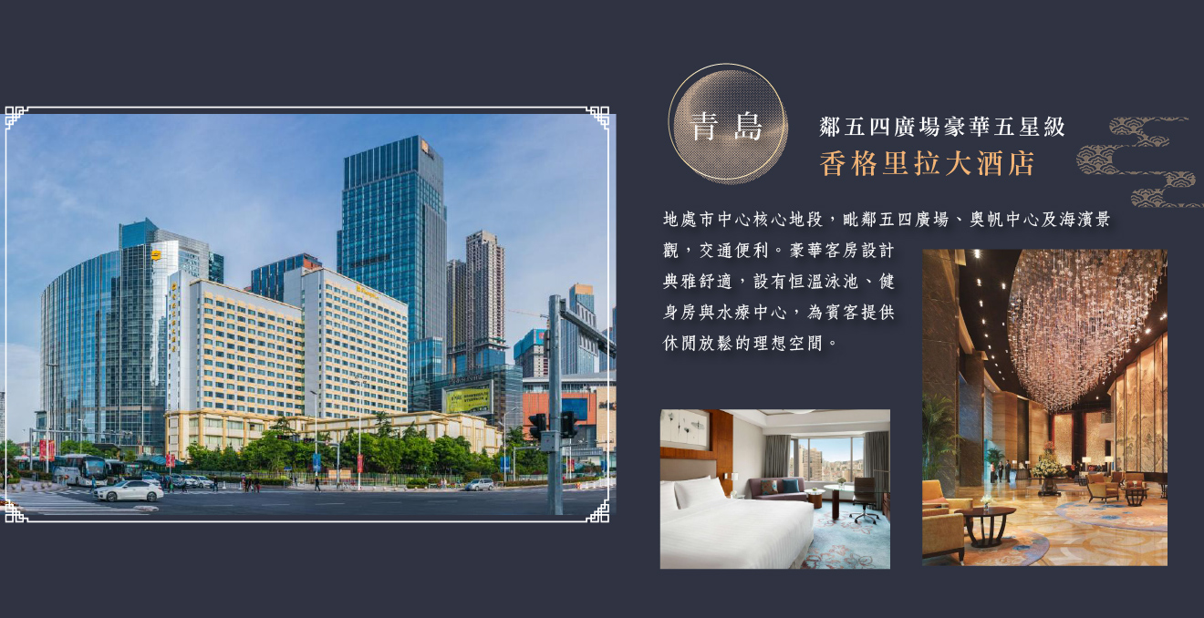 住宿:二晚豪華五星級青島香格里拉 或 美高梅飯店 或同等級