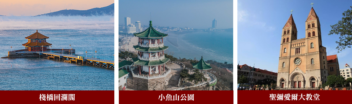 青島~棧橋洄瀾閣、小魚山公園、聖彌愛爾大教堂、 大鮑島文化休閒街區、萬國歷史名街八大關+別墅下午茶、 五四紀念廣場、奧林匹克帆船中心、 私房青島一絕蝦水餃+精緻美食料理、濱海燈光秀