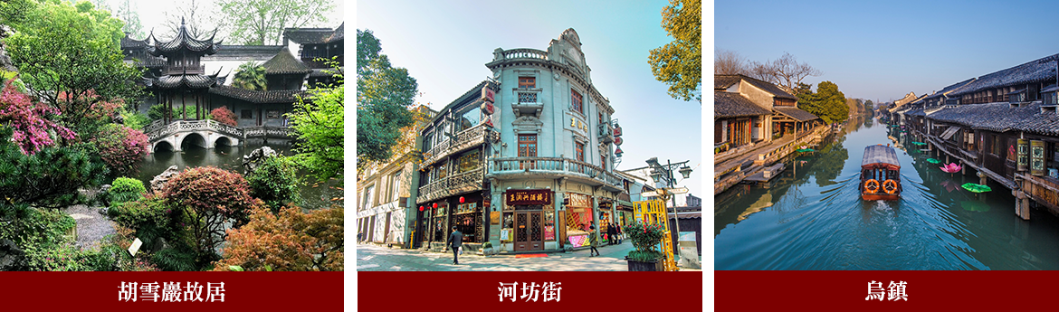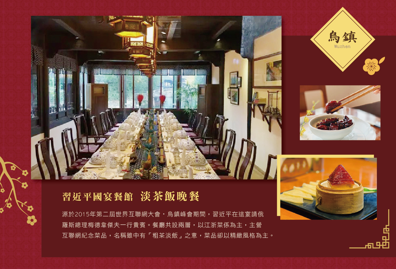 杭州~胡雪巖故居、河坊歷史文化街88km 烏鎮~小舟夜遊西市河、特別安排習近平國宴淡茶飯晚餐