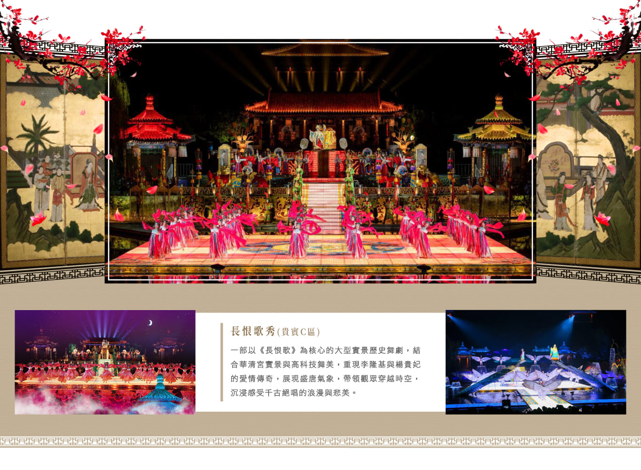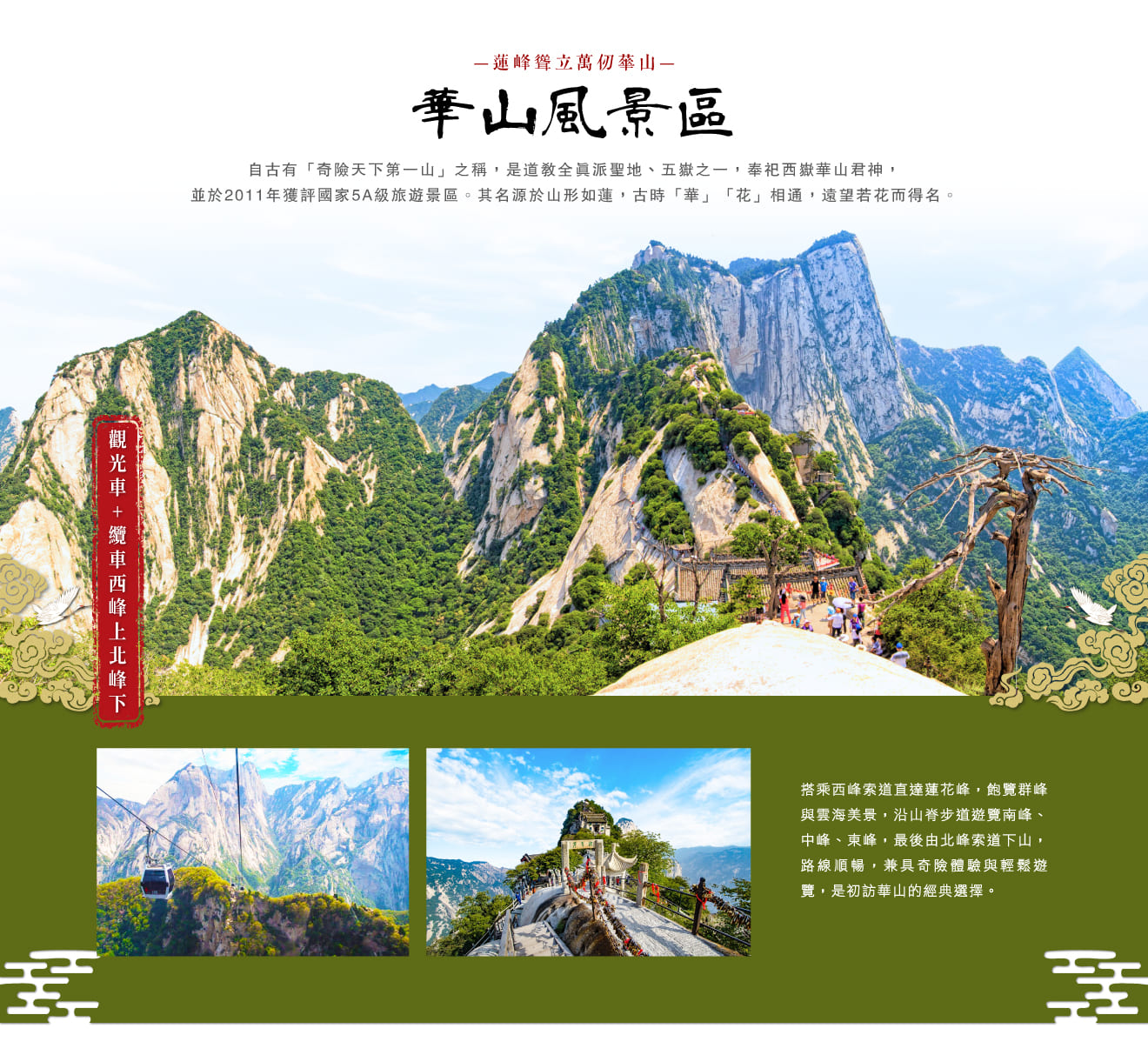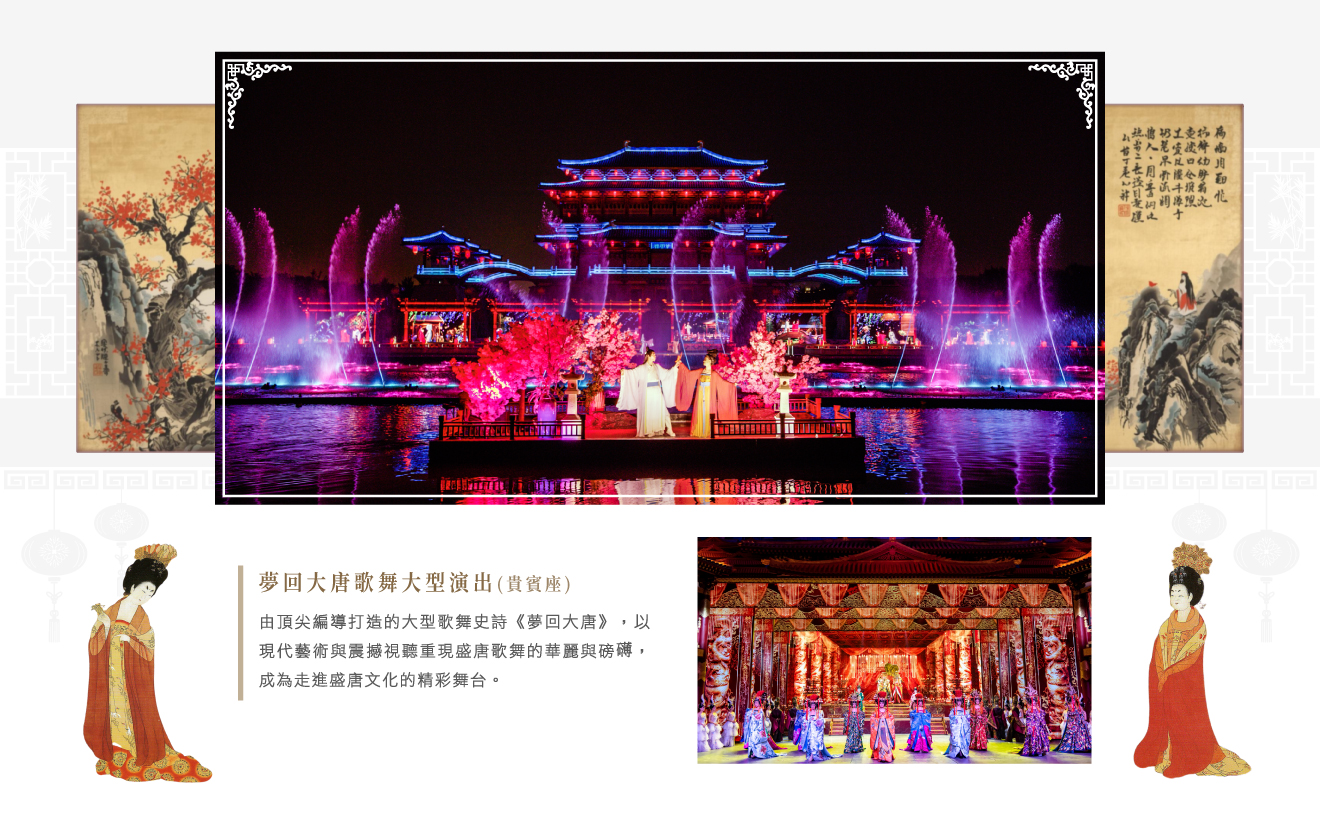 華山風景區(含觀光車+纜車西峰上北峰下)92km 臨潼~驪山華清宮景區、特別安排長恨歌大型實景秀(貴賓C區)