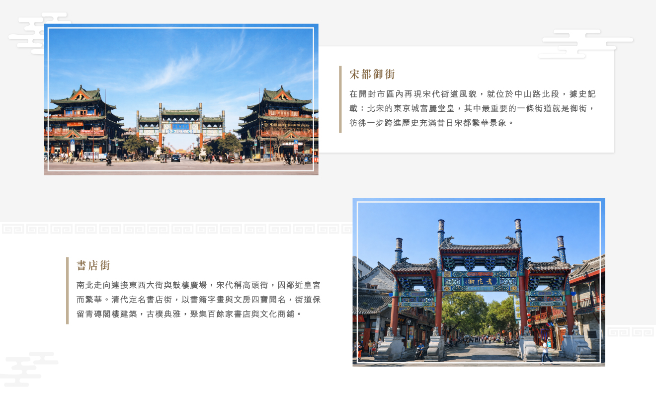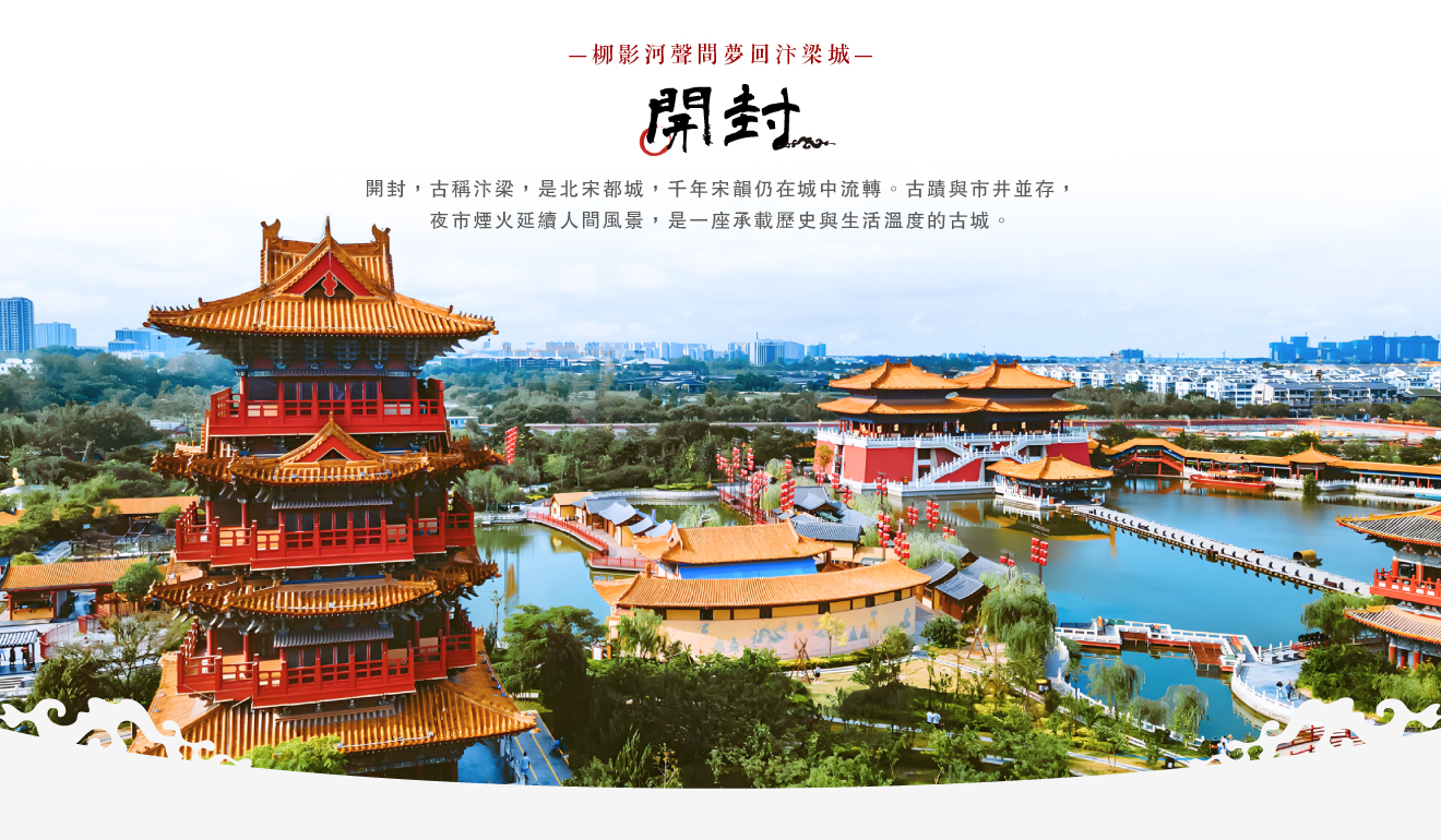 開封~宋都御街、書店街、鼓樓、山陝甘會館、開封府、包公祠、 千年傳統第一樓包子宴特色豫菜料理、鐵塔景區、清明上河園、 特別安排大宋.東京夢華實景秀(貴賓座)