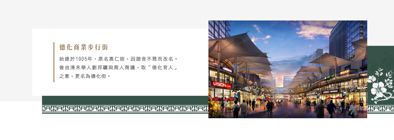 【德化商業步行街】位於二七區的商業步行街,全長600公尺。已有百年歷史,是最早前建於1905年的惠仁街,後因有人把「惠仁街」叫做「毀人街」讓商人覺得這個名字不好聽。之後有清未舉人劉邦驥與眾商人議論,取「德化育人」之意,將惠仁街改成德化街。