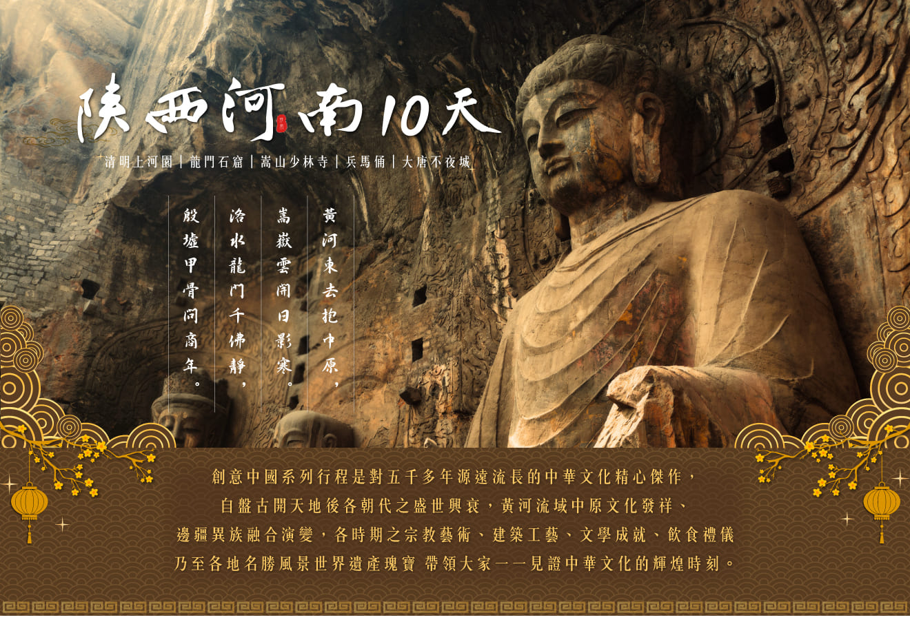創意中國陝西河南~清明上河園龍門石窟嵩山少林寺兵馬俑西安大唐不夜城10日
