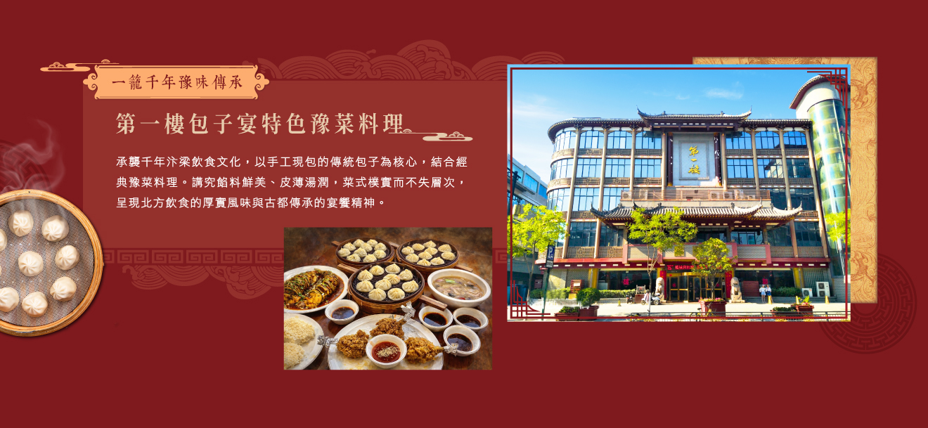 早餐:酒店內 午餐:特別安排千年傳統第一樓包子宴特色豫菜料理 晚餐:特別安排豪華酒店內中式合菜/國際式自助餐