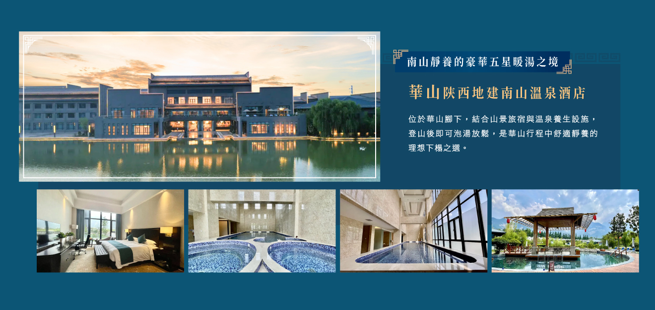 住宿:豪華五星級陝西地建南山(華山)溫泉酒店或同級(可攜帶泳衣泡溫泉)