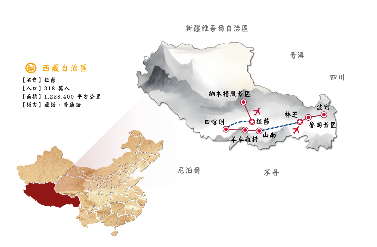 2027/04/02(五) | 桃園國際機場出發 創意中國西藏桃花季~林芝波密米堆冰川然烏湖羊卓雍措日喀則納木措布達拉宮雙國鐵動車11日機位 29 候補0 已售0 可售28🌺長榮航空BR+雙內陸航班、拉薩3晚瑞吉酒店豪華團 |