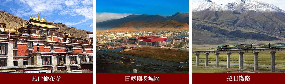 【扎什倫布寺】意為“吉祥須彌寺”,藏傳佛教格魯派政令中心,始建於明正統十二年(西元1447年),宗喀巴弟子根敦主於日喀則尼色日山下興建,後四世班禪羅桑卻吉堅贊加以擴建修繕,占地15萬平方公尺,其建築融合了藏區傳統建築特色和佛教的特點,與拉薩的“三大寺”甘丹寺、色拉寺、哲蚌寺合稱藏傳佛教格魯派的四大寺,另與青海的塔爾寺和甘肅的拉卜楞寺並列為格魯派的「六大寺」。 寺中錯欽大殿可容2,000人誦經,殿中有釋迦牟尼像,兩邊有根敦主與四世班禪立像,寺內最宏偉的建築是大彌勒殿和歷世班禪靈塔殿,寺藏有價值連城的佛像、佛塔、唐卡等,壁畫也很有特色,色彩鮮豔奪目用筆細膩工謹;還有明清時代的各種瓷器、琺瑯器、玻璃器等,都是研究西藏各個歷史時期政教和社會發展的無價之寶。