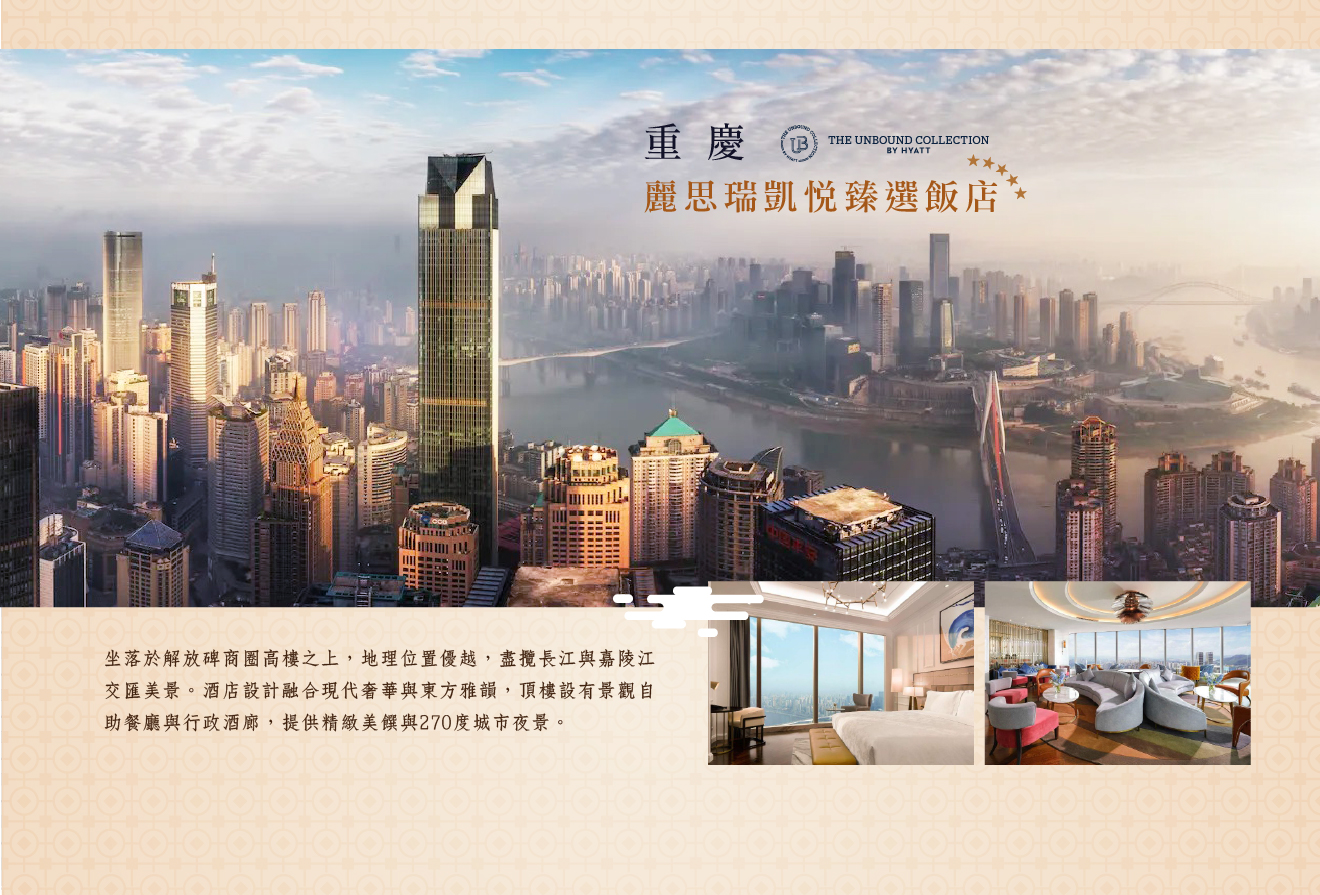住宿:最佳地點解放碑廣場豪華五星頂級重慶麗思瑞凱悅臻選飯店 或同等級