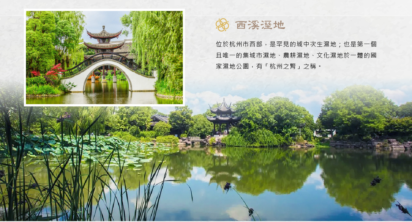 【西溪濕地~電瓶車+遊船】5A級景區,是罕見的城中次生濕地;也是第一個且唯一的集城市濕地、農耕濕地、文化濕地於一體的國家濕地公園,有「杭州之腎」之稱,濕地內有著名的三堤十景,風景優美,相傳宋高宗路過西溪見此景云:「西溪,且留下」,可見西溪之美,亦為電影《非誠勿擾》之拍攝地,尋著電影中的足跡而去,在河道上漫遊,感受唯美而幽靜的氣息。