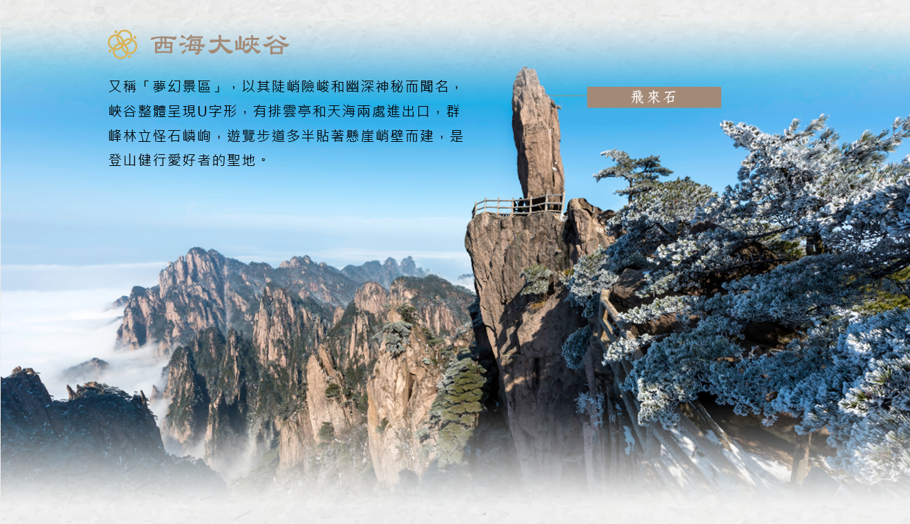 黃山風景區~西海大峽谷(步行下、地軌纜車上)、飛來石、光明頂、 白雲景區