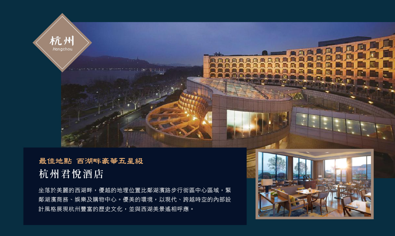住宿:豪華五星級杭州君悅酒店 或同等級