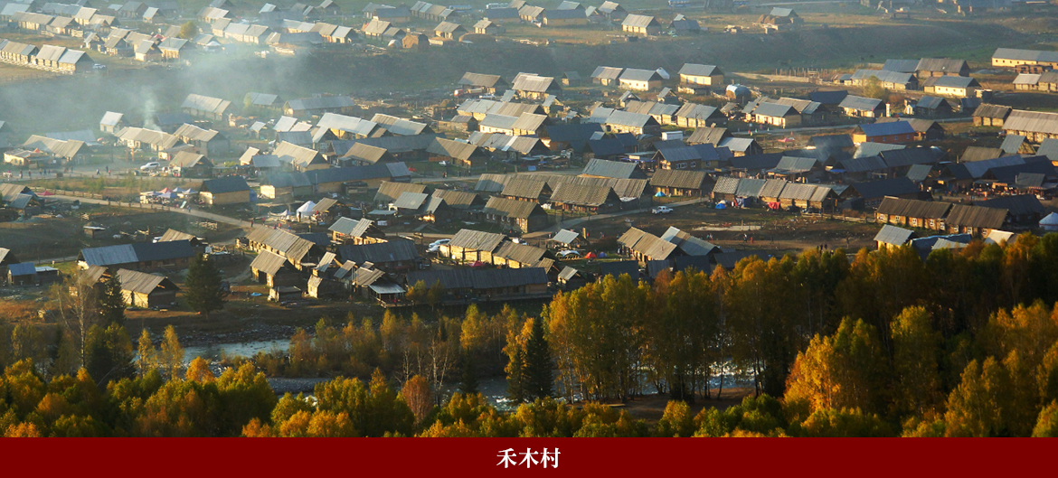 【禾木村】美在於它濃郁的民俗風情和原始的山水風光,曾被選為中國最美鄉村之一。在鬱鬱蔥蔥、群山環抱、綠草如茵的河谷裡,圖瓦人的尖頂小木屋、牲口圍欄,隨意地散落在村子的各個角落,禾木河在綠樹的掩映中從村子旁嘩嘩流過,淡淡的水汽在樹林上空形成一條蜿蜒的白絲帶,飄蕩在村莊與大山之間,增加了一絲神秘色彩。