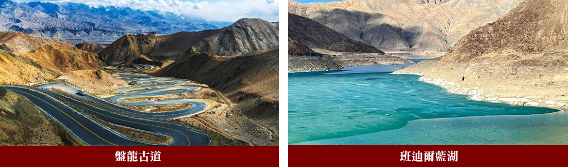 【盤龍古道】位於帕米爾高原的喀什地區塔什庫爾干縣,原為連接塔縣與瓦恰鄉的山間公路。全程約三十六公里,擁有六百多個S型與U型急彎,海拔從約三千公尺攀升至四千兩百公尺。從高處俯瞰,道路蜿蜒盤旋,如一條黑龍盤踞於群山之巔,氣勢磅礴。