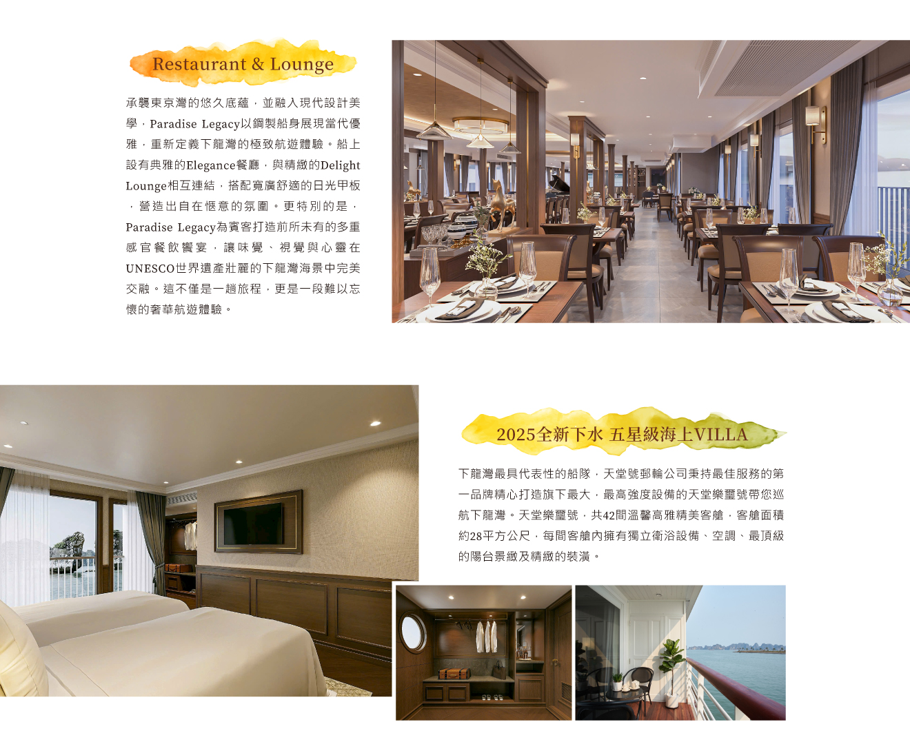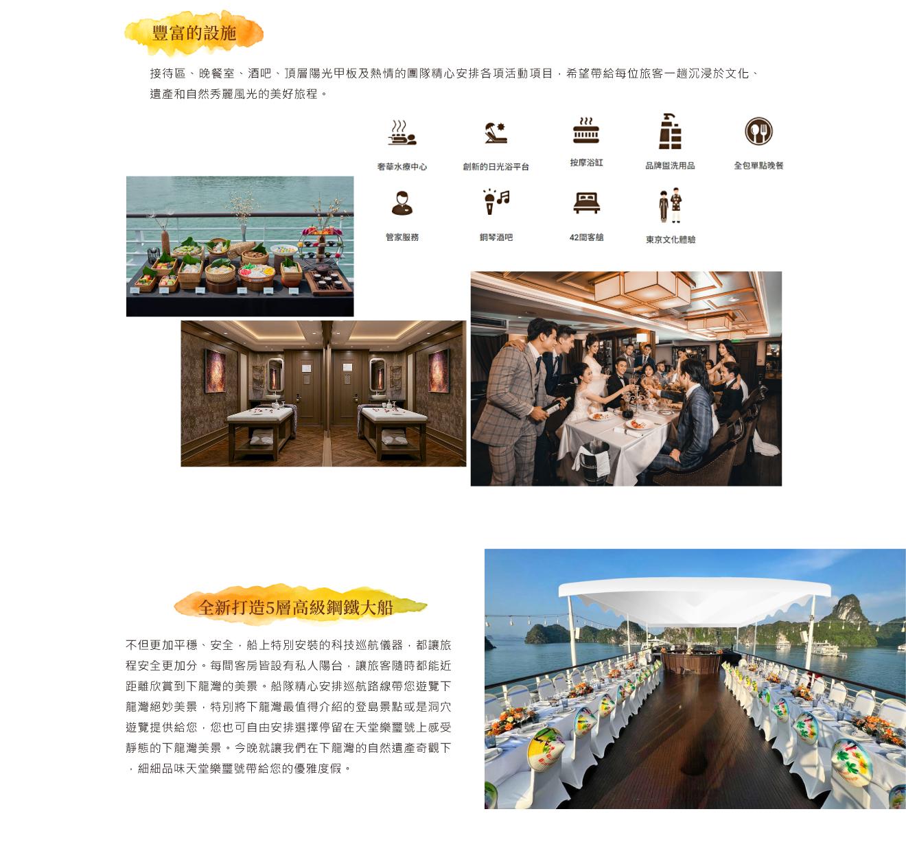 ※為讓貴賓都能得到最佳服務品質,遊船行程安排及餐食菜色內容,以船公司現場公告為主。