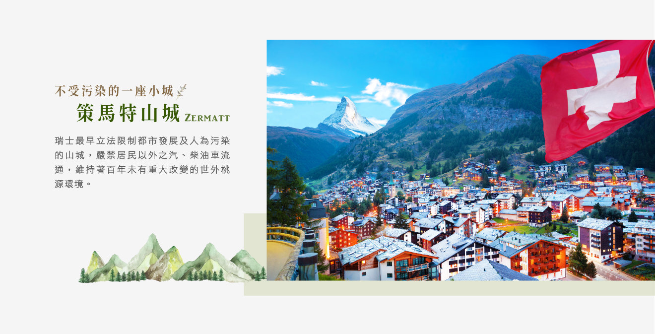 特別安排搭乘高山火車前往最具人氣的山岳渡假勝地■策馬特,瑞士最早立法限制都市發展及人為污染的山城,嚴禁居民以外之汽、柴油車流通,維持著百年未有重大改變的世外桃源環境,四週房舍的露台上種滿花朵迎風搖曳歡迎遊客。