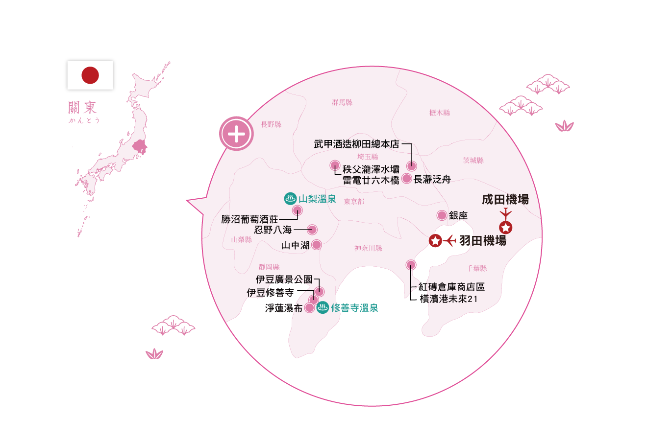 (依航班)在國際機場集合,辦理出境手續後,搭豪華噴射客機飛往日本首都東京,展開日本溫泉美食度假之旅。