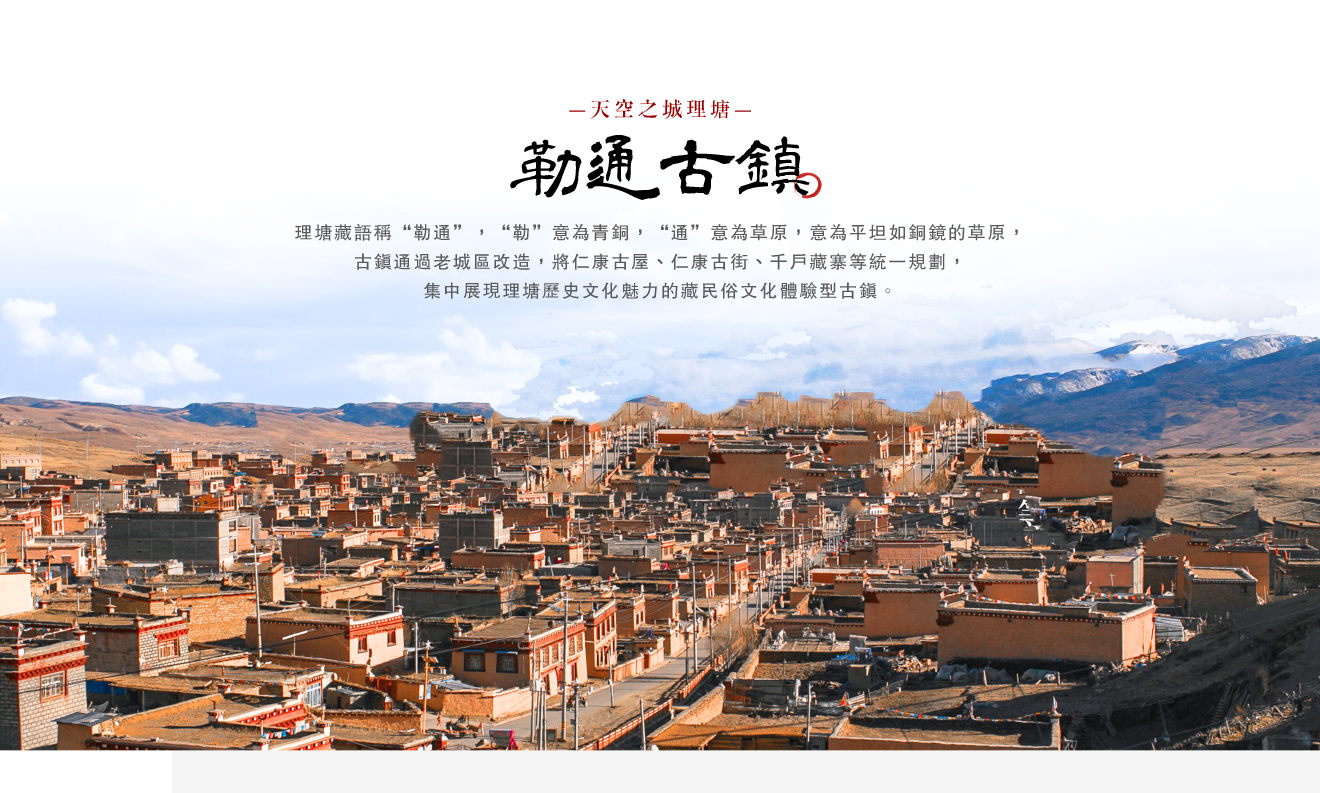 【勒通古鎮】理塘藏語稱“勒通”,“勒”意為青銅,“通”意為草原,意為平坦如銅鏡的草原,古鎮通過老城區改造,將仁康古屋、仁康古街、千戶藏寨等統一規劃,集中展現理塘歷史文化魅力的藏民俗文化體驗型古鎮,有由13個藏寨4000余戶藏房集中而成的藏區最為集中,規模最為宏大的千戶藏寨群,在規劃建設上最大限度保持了藏民族聚居地原有的自然景觀和鄉村風味,致力打造出“城中有景、景中有城,景城一體” 的高原城村相連景觀。