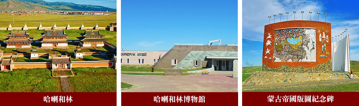 【哈喇和林 Kharkhorin】UNESCO 世界文化遺址,是蒙古帝國建於 1235 年的歷史古都,位於鄂爾渾河河谷,氣候良好水源充足牧草肥美,13 世紀成吉思汗以此為營地,在此種植農作物,製造農具、武器,成為戰爭所需物資補給站,對歐亞實施征服的企圖,窩闊台繼位後正式定都於此,並開始建城,成為蒙古帝國的第一個都市與經濟中心,當時它是世界上陸地貿易最發達的國際大都市之一,元朝滅亡後,雖然歷經無數的破壞,依稀可見的廣場、基石,雖然現在人口僅 9000人的小鎮,來此一探發思古之悠情,遙念當年第一大帝國首都的雄偉。