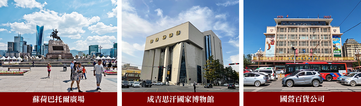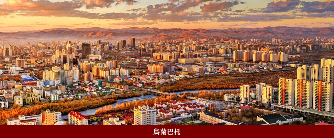 【烏蘭巴托Ulann-Baatar】蒙古語為”紅色英雄”之意,舊名為庫倫,建城於1639年,位於海拔1351公尺土拉河谷,4座高低起伏的山巒環繞著烏蘭巴托的四周,藍色的土拉河穿梭其間,構成一幅自然的山水畫,烏蘭巴托的主體建築、棋盤式的街道佈置方式、飲食習慣、生活形態等等,深深融合俄羅斯文化;同時聚集了全蒙古三分之一以上的人口,是政經、文化、商業中心。