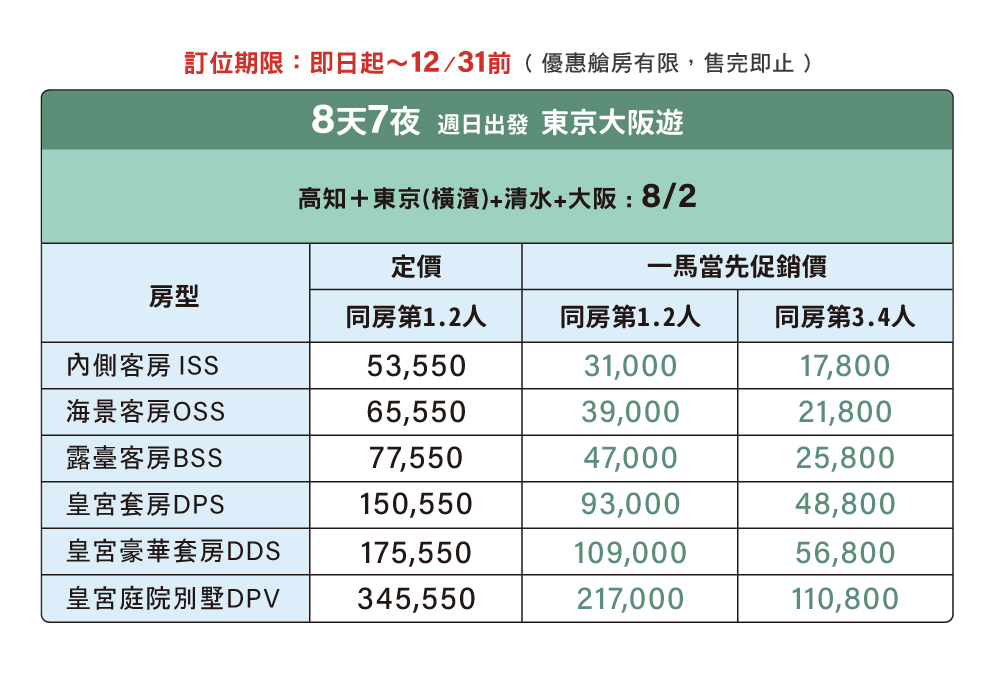 . 👉航程試算 售價表 (請點我) 航程表 (請點我) 🔗 加入 LINE@ 享甜甜價 | |||
